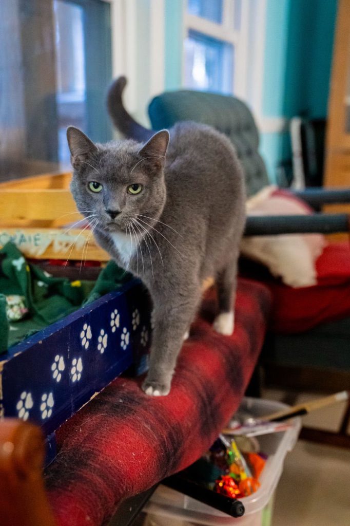 The adoption fee covers all vaccinations, heartworm and feline leukemia/FIV (feline immunodeficiency virus) testing, de-worming, and spay or neuter procedure.