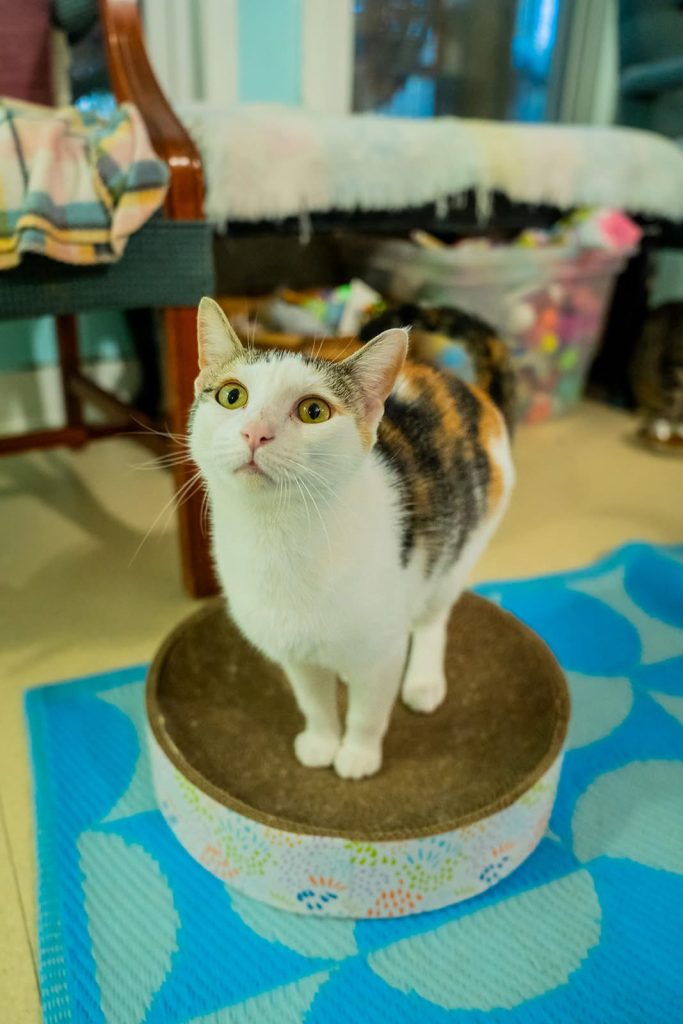 Strawberry is a 1-2 year old sassy calico girl! This gal loves to play with toys, and her select few kitty friends. She is full of calico cat attitude, and is not afraid to voice her opinion! She would love a home where she could be the only cat, and rule her castle, as all queens strive to do. Strawberry loves her food, wand toys, and being close, but not super close, to her humans. Were going to say she would be best kept away from the tiny humans!
